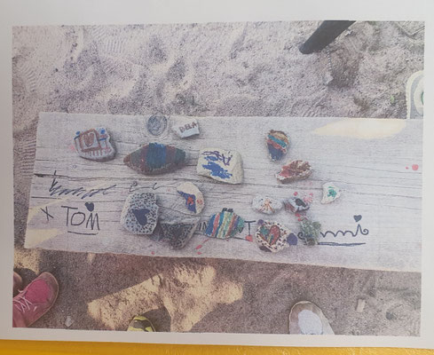 Eine Malstation für Steine, wenn die Besucher das Museum durchlaufen haben.